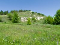 Пришлось вернуться немного назад, обогнуть поле и спускаться по той же дороге (она чуть западнее), по которой мы и поднимались в сторону озера. Вот и меловые склоны, тут у нас очередная остановка...